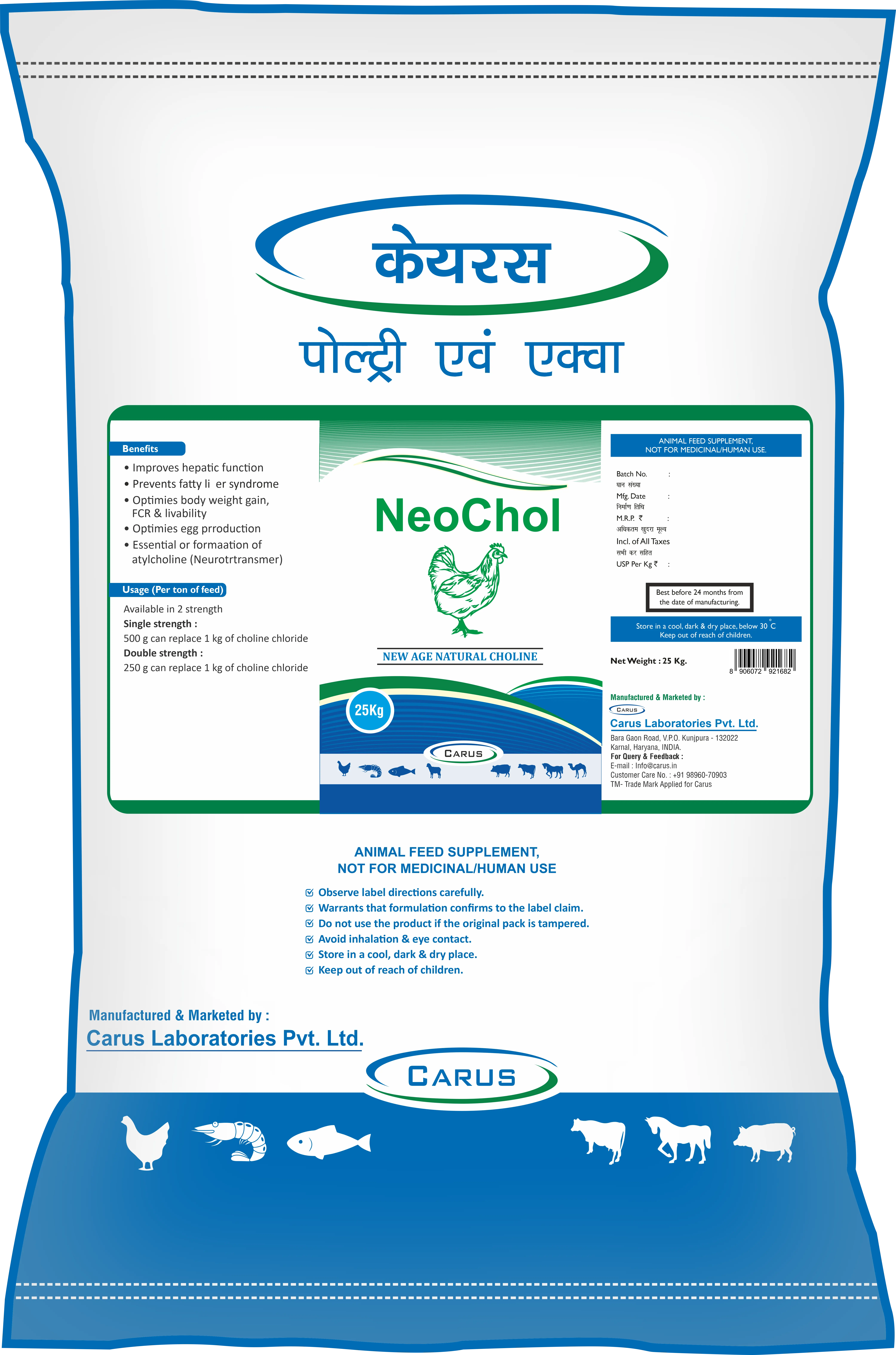 - Single Strength: 500g NeoChol can replace 1kg of choline chloride
